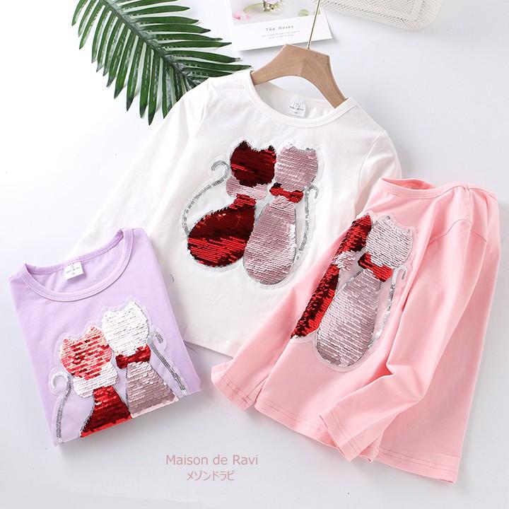 子供服 女の子 猫 変色スパンコール 長袖 カットソー 全3色 カジュアル キッズ プチプラ ジュニア おしゃれ 安い 可愛い 新品 かわいい Cmt47 Maison De Ravi 通販 Yahoo ショッピング
